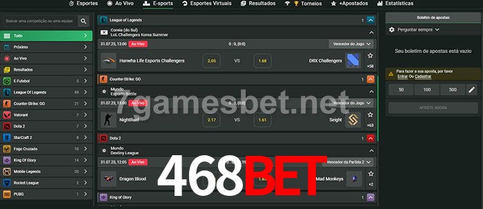O 468bet oferece uma grande seleção de opções de apostas em e-sports com probabilidades competitivas